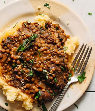 Lentil Mushroom Stew Over Mashed Potatoes